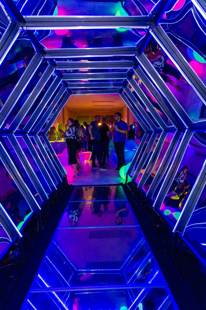 • Design geométrico que cria um túnel visual imersivo