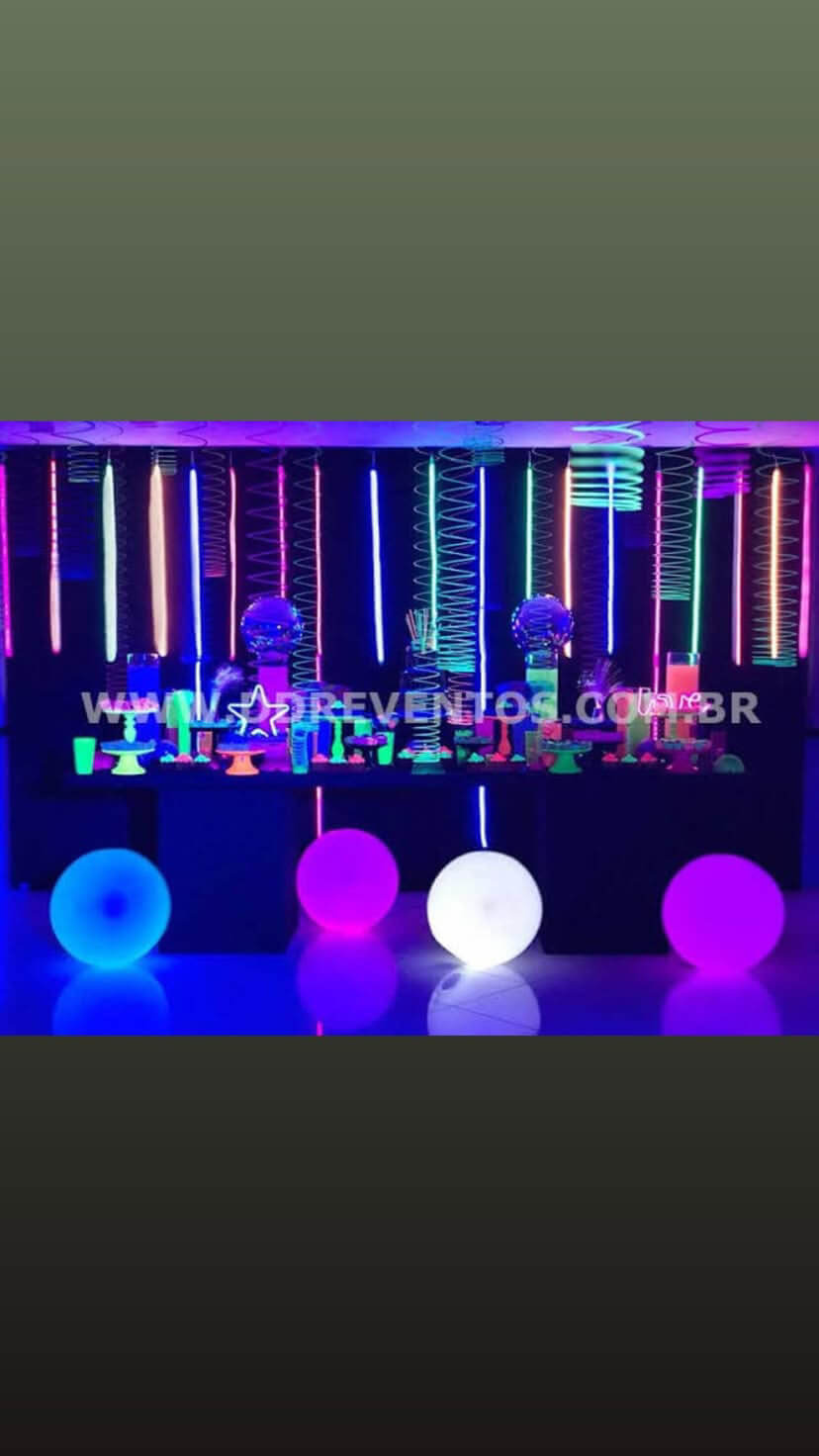 Versáteis e impactantes, podem ser utilizadas em bares, lounges, pistas de dança, áreas de circulação e cenografias temáticas, compondo ambientes sofisticados e altamente instagramáveis. A possibilidade de personalização das cores permite integração total com a identidade visual do evento ou da marca.