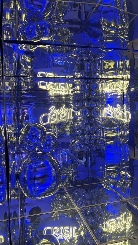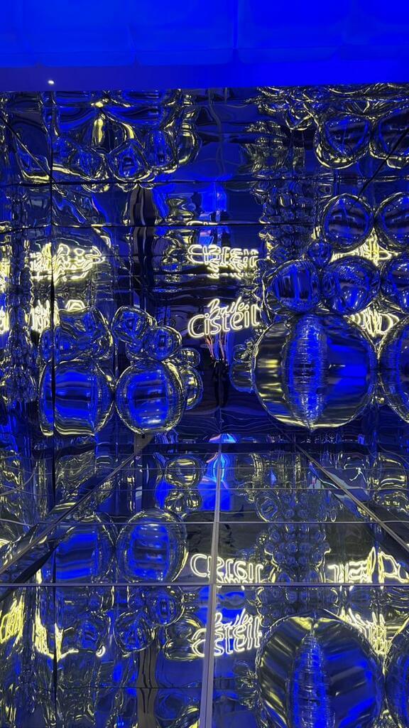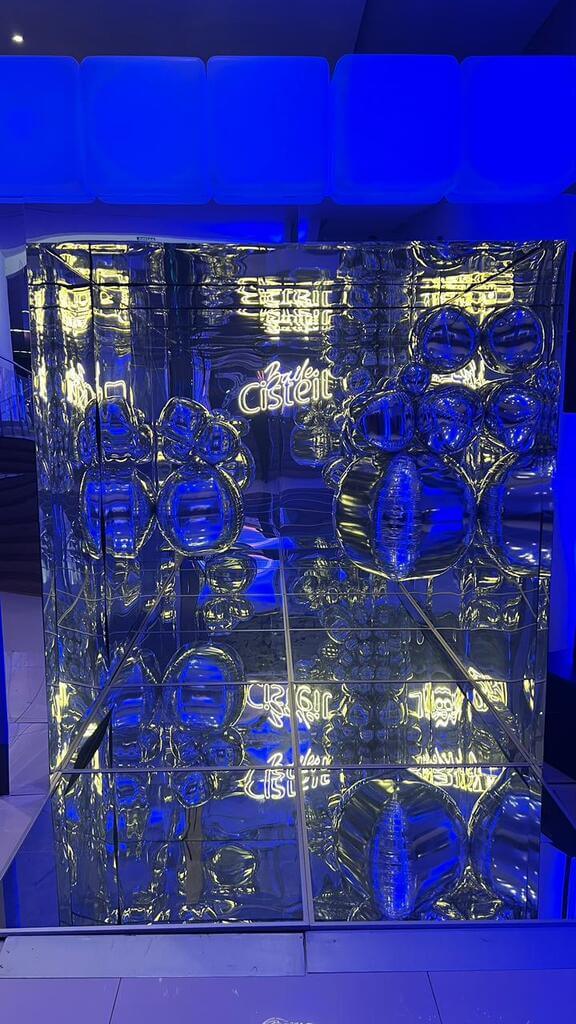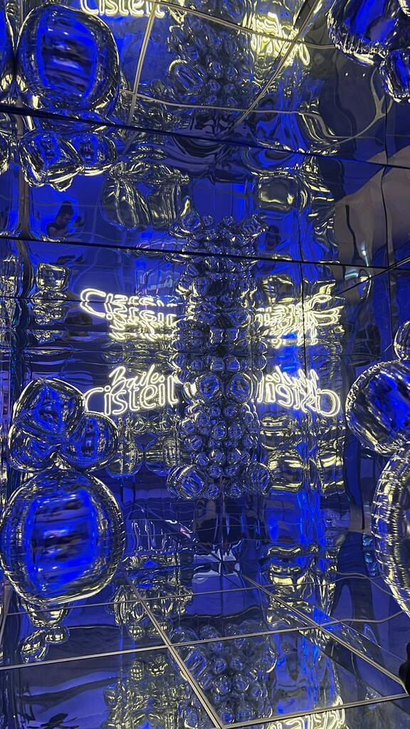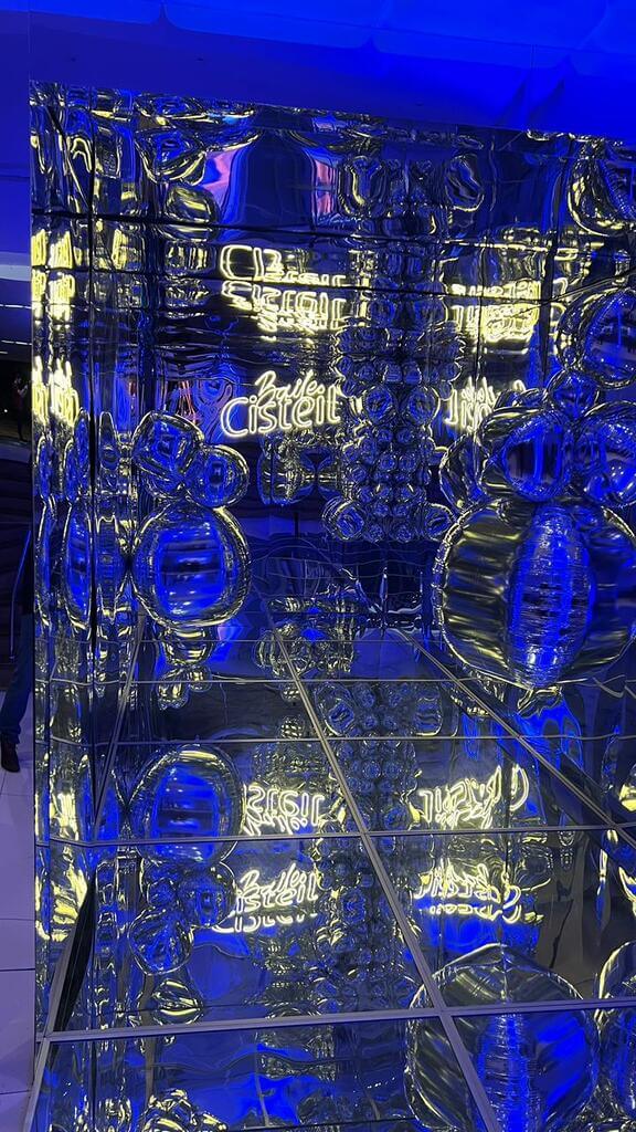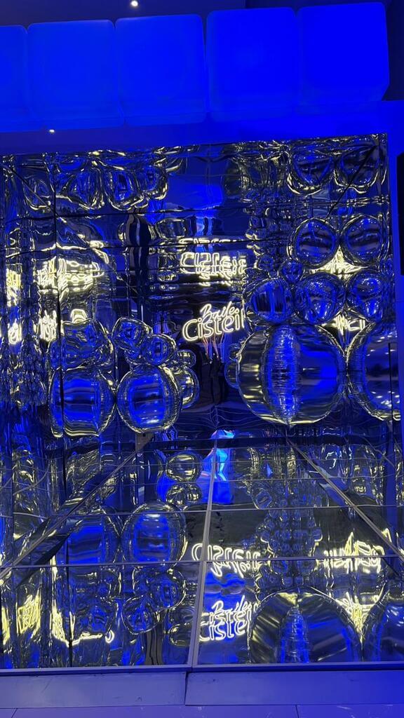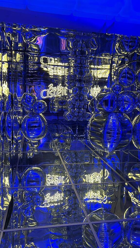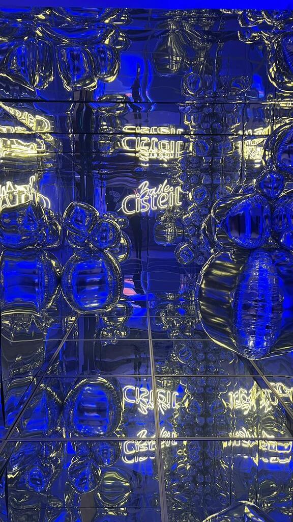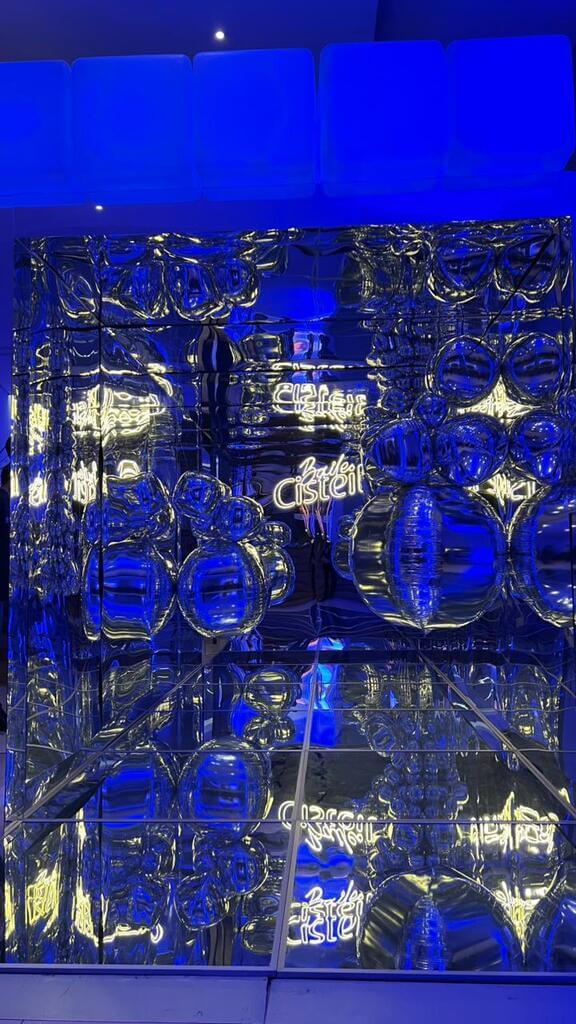 Cada passo dentro do túnel cria um efeito visual hipnotizante, onde luzes, reflexos e elementos decorativos se multiplicam ao infinito.