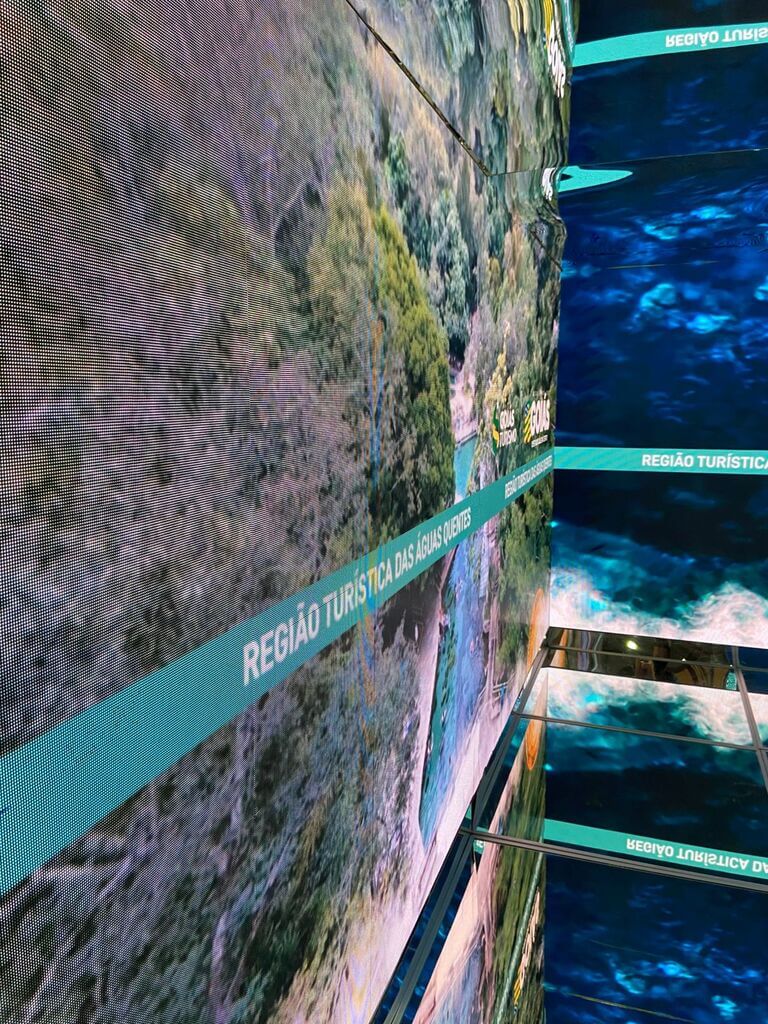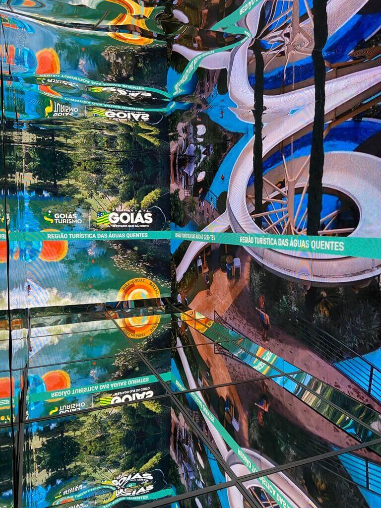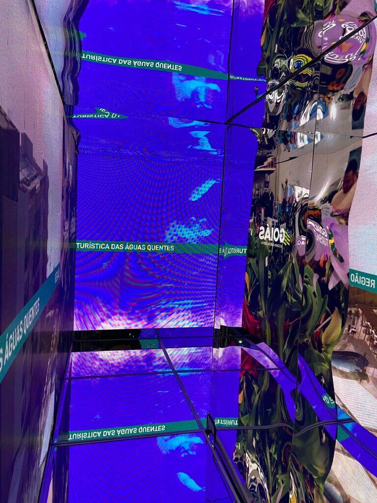 • Uma das paredes estruturada com painel de LED de alta definição, responsável pela projeção de conteúdo visual dinâmico.